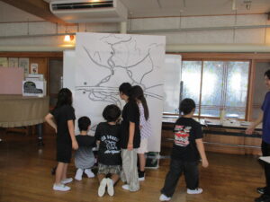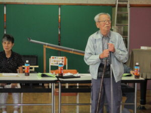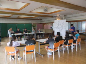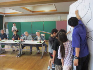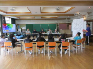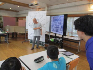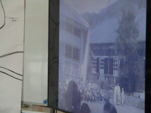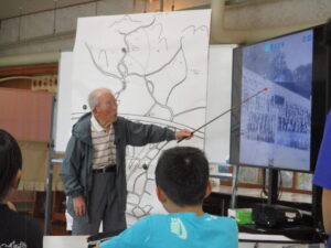 そこで自分たちでも調べていき、学校の掲示から大河内第二小学校があったことに気が付きました。当時のことをもっと詳しく知りたいと思った子どもたちが大河内第二小学校に縁のある方々と出会い、出前授業をしていただきました。