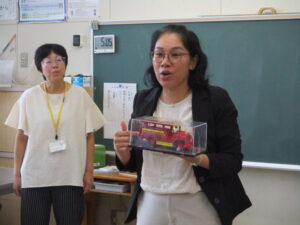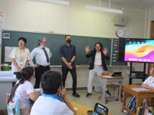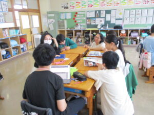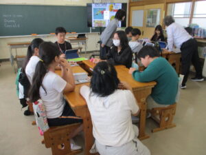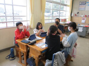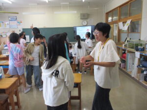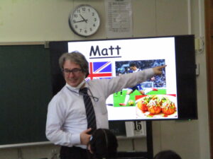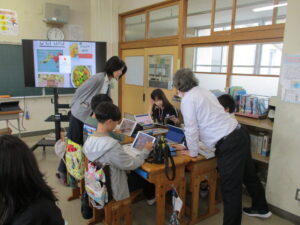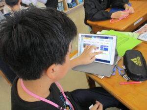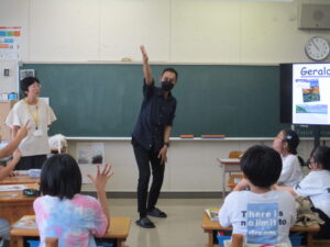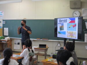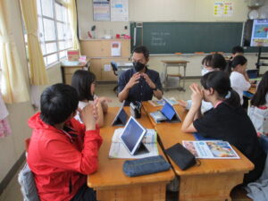 10月16日、5年生と6年生でイングリッシュデーを行いました。本校では毎年企画しているオールイングリッシュで授業を行う英語活動です。今年は、フィリピンからドナ先生、ジェラルド先生、イギリスからマット先生が来てくださいました。初めは、それぞれの国のこと、好きなスポーツや食べ物などの自己紹介でした。英語とジェスチャーで先生方が伝えようとすることをどんどん当てて理解していく子どもたち。さすがだなぁと思いました。5年生では、自己紹介の活動がメインでした。子どもたちからも英語で自己紹介を行いました。6年生ではタブレット端末を使って行ってみたい国のことを話す活動か中心になりました。自然に笑顔が出る和やかで楽しい雰囲気のもと、とても充実した活動ができました。県外から来ていただいた先生方、本当にありがとうございました。