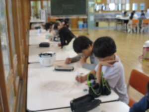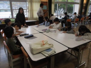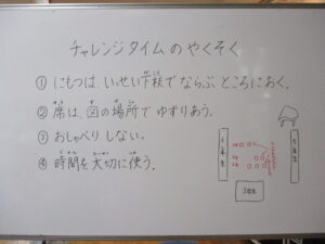 10月22日、後期から全校補充学習「チャレンジタイム」が始まりました。今日は認証式もありましたので、こんなことをやっていくんだよ、とガイダンス的な活動を10分間行いました。1年生・2年生・4年生は教室で、人数の多い3年生と、学習が難しくなっている5年生・6年生は、教室とランチルームに分かれて、それぞれが自分の力に合った学習を進めていきます。課題は、担任の先生が選ぶこともあります。宿題や普段の学習の積み残しがある場合は、それらをきちんとやる時間の確保にもなっています。宿題は、とても大事です。学んだことを定着させなければ、いざというときに学んだことが役に立たないからです。大河内小学校で始まった「チャレンジタイム」が、子どもたちの夢を叶えるために役立っていくことを願っています。(写真で紹介しているのは、ランチルームで学習する子どもたちの様子です。)