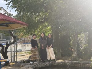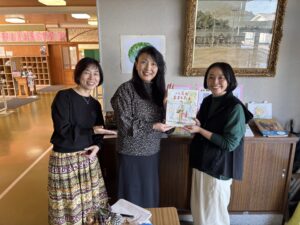 10月27日、有名な絵本作家の由美村喜々さんが来てくださいました。由美村さんは本名を木村美幸さんと言って、本校の校歌の作詞を担ってくださった故山本薫先生の娘さんです。子どもたちに校長オススメの絵本で紹介した『バスが来ましたよ』の作者さんです。今回は『バスが来ましたよ』や『トットちゃんの15つぶのだいず』の挿絵画家である松本春野さんとアリス館の山口郁子さんも来てくださいました。