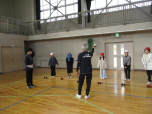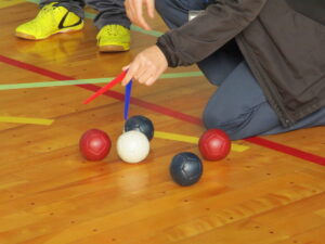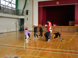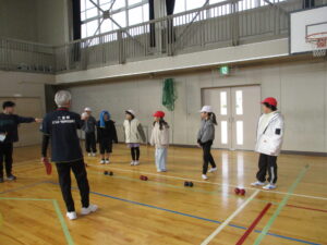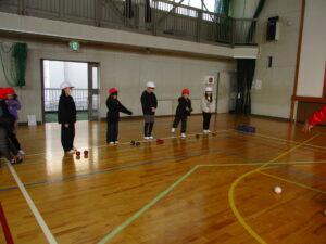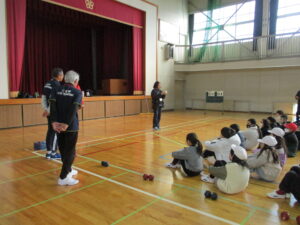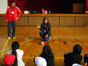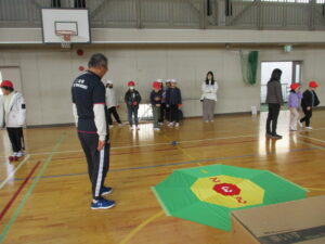 12月8日3・4年生がボッチャ体験をしました。社会福祉協議会さんにお世話になり、障がい者スポーツインストラクターの方々にお越しいただき、体育館でゲームの仕方を教えて頂きました。最初はなかなか思うようにボールを投げられず、苦戦していましたが、そこは子どもたちです。どんどんコツをつかみ、何点も得点してゲームを楽しんでしました。
