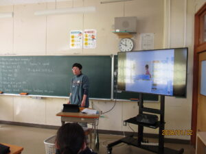 ホーム > 日々の活動の様子 6年生外国語 今日は6年生が外国語の学習をしているところを見てきました。外国語の先生は、山本先生です。いろいろな例文を黒板に書いてもらい、今年1年で一番の思い出を英語で振り返る活動をしました。 シェアする Twitter でシェア はてなブックマークに保存 LINE でシェア Facebook でシェア Pocket に保存 Feedly で購読 関連投稿 日々の活動の様子 全校いもほり 日々の活動の様子 創立140周年記念行事がありました 日々の活動の様子 授業参観&引き渡し訓練③ 日々の活動の様子 2年生せいかつの授業では 日々の活動の様子 4月18日(火)全国学力学習状況調査調査・松阪市標準学力調査がありました。 日々の活動の様子 5・6年生、地域のみなさんとグラウンドゴルフ大会 前の投稿 5年生食育 次の投稿 2・4年生図工