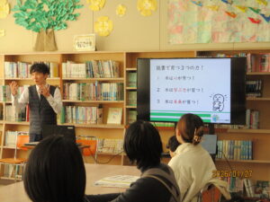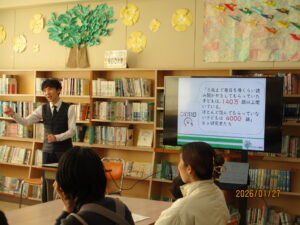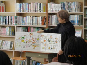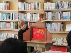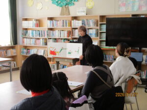 1月27日、一日入学がありました。来年度本校に入学してくる子どもたちは11人の予定です。初めに、三重教育県委員会の中井さんから、家読のすすめについてお話がありました。小さなころから5歳くらいまでに毎日本を読み聞かせしてもらった子はなんと140万もの言葉を得ているそうです。あまり読み聞かせしてこなかった子は4000の言葉にとどまるのだそうです。すごくちがいますね。心を育て、学びの基盤になる読書、とても大切だと実感しました。その後は中村さんに絵本と紙芝居を読んでいただきました。しっとりとした優しい声で読んでいただく時間は、とても素敵なひとときとなりました。本校でももっと読書を大切にしていきたいと思いました。ありがとうございました。みなさんの入学を楽しみにして待っています。