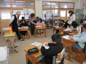 1月28日、伊賀市から濱田嘉昭先生を講師にお迎えして、算数科の授業改善のための研修を行いました。この日は、3年生、4年生、5年生でそれぞれ濱田先生に授業をしていただきました。ほかの先生たちもできるだけ参加して一緒に学びました。濱田先生の「間違ってもいいんだよ」というメッセージのもと、何でも言える安心感のある雰囲気、今日の課題を子どもたちに明確に掴ませる導入、わからないことを確認して進める丁寧さ、子どもたちの意見の広がりを見事に収束させ大事なことをおさえる「わかる授業」にまとめていく手腕。子どもたちがその授業の課題からそれることなく、45分間集中して、核心を見いだしていく姿を見て、子どもたちの可能性の広がりを感じ、たくさんのことを学ばせていただきました。学ばせてもらったことを子どもたちへの日々の授業に生かしていきます。ありがとうございました。
