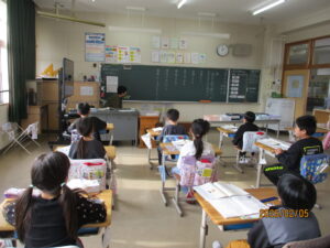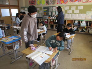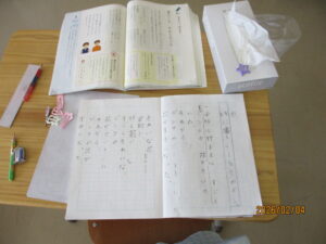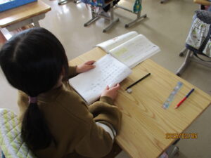 2年生は国語で詩をつくっていました。先生が黒板にどんなことを書くといいか、例を書いています。初めてで少し難しいかな?と思いましたが、「どんなことを書いてもいいよ」と言ってくれるので、安心したようです。一緒にサポートしてくれる先生も「それいいなぁ!」「もっと書けるんじゃない?」など背中を押してくれています。自信がついたのか、子どもたちはどんどん素敵な言葉をつづり始めました。次回はみんなで発表し合うようです。今の感性でしか書けない詩、また見せてくださいね。