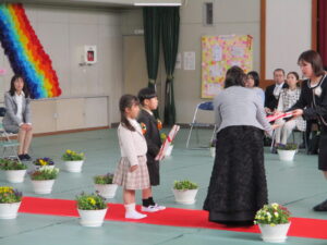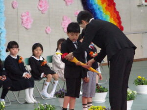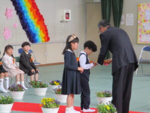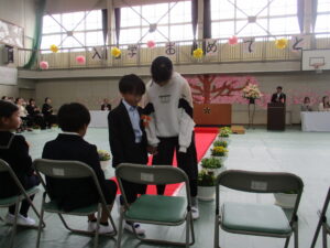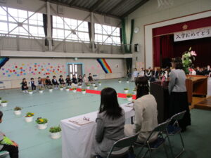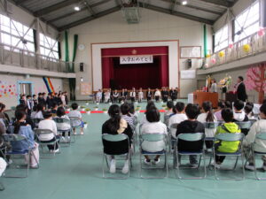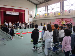 4月6日、令和8年度の入学式が行われました。今年度は11人のかわいい新入児童を大河内小学校にお迎えしました。在校生も職員も地域の方々も、この日をとても楽しみにしていました。校歌を歌ったときは体育館じゅうに響き渡る大きな歌声で、新たな出会いを歓迎する気持ちが伝わったようでした。優しいお兄さん、お姉さんと早く仲良くなれるといいですね。コミュニティ・スクールでお世話になっている地域の方にもお越しいただき、ともに入学をお祝いしていただくことができました。お忙しい中、ありがとうございました。新1年生のみなさん、入学おめでとう。